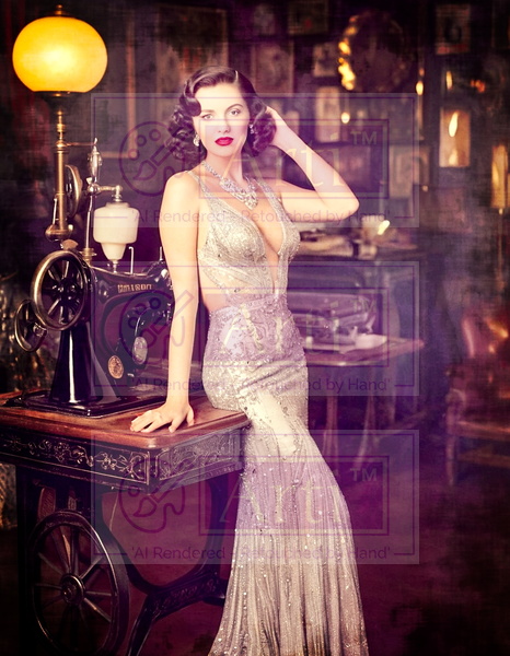 Arti-Designs, Sewing Machine, Gates Museum, AI Generated, Hand Re-touched, Copyright (2024) Gates Museum Ltd, Gates Art, Gates Gallery, Gates Community, Arti-Designs Did you know ...?Grain 1. The lengthwise and crosswise grain of fabric refer to the directions parallel to the warp and weft, respectively. 2. With the grain indicates parallel to the threads of a woven fabric, lengthwise or crosswise.3. Dyed in the grain refers to dyeing with kermes, a red insect dye.