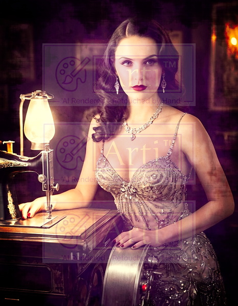 Arti-Designs, Sewing Machine, Gates Museum, AI Generated, Hand Re-touched, Copyright (2024) Gates Museum Ltd, Gates Art, Gates Gallery, Gates Community, Arti-Designs Did you know ...?Hand A term used to describe the feel and texture of a fabric. ???This fabric has a nice hand to it.???