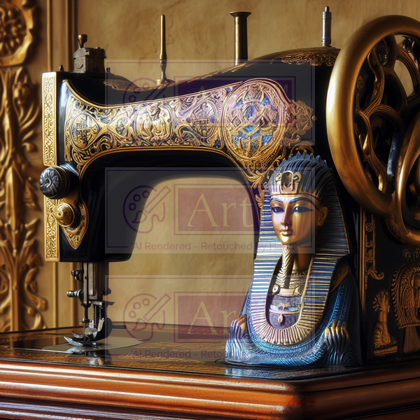 Arti-Designs, Sewing Machine, Gates Museum, AI Generated, Hand Re-touched, Copyright (2024) Gates Museum Ltd, Gates Art, Gates Gallery, Gates Community, Arti-Designs Did you know ...?Pinking shears Scissors that cut a zigzag edge thereby reducing the risk of fraying.